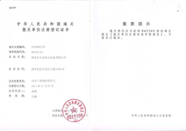 海關(guān)報(bào)關(guān)單位注冊(cè)登記證書(shū)