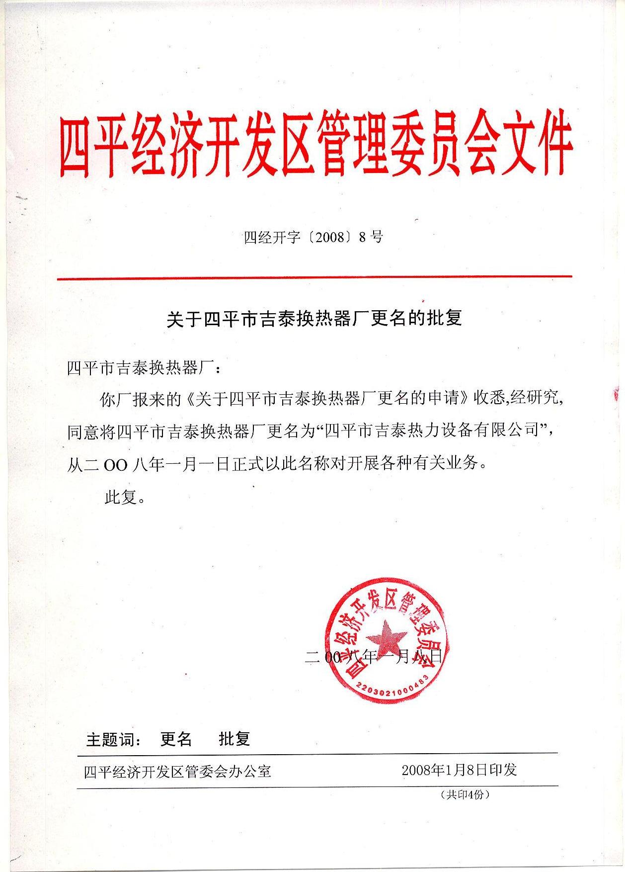 改制更名批復(fù)